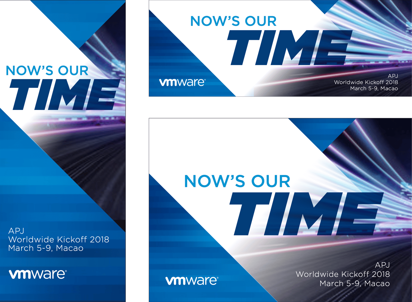 Designs were crafted to reflect the urgency and opportunity embodied in the theme. Each composition aims to capture the momentum and excitement of VMware's strategic vision, focusing on immediate action and forward-thinking innovation. These designs were created to energize and engage attendees, emphasizing VMware's pivotal moment in shaping the future of technology.